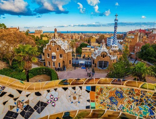 Départ ensuite vers le Parc Güell. La vue que l’on a depuis ce parc est sans doute la plus belle. Elle permet de se rendre compte de la taille de la ville bordée par la Méditerranée. ( En option )